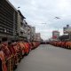 Попереду всієї колони йшли вірні несучи хрест і патериці, після яких йшли діти з багровими трояндами (марійська дружина). В перших лінках колони Мальтійська служба допомоги супроводжувала людей на інвалідних візках, які також кожного року беруть участь в Страсному поході. Перед самим хрестом семінаристи разом з катехитками несли образи кожної стації Хресної Дороги. Наступним був Хрест – великий, тяжкий, так бо такі є наші упадки, але хрест випромінював любов Божу і надію на Воскресіння і життя вічне для тих хто полюбить його і розкаявшись поставить його на свої рамена і відчинить Ісусові двері свого серця. Так несли хрест всі почергово: священики, семінари, сестри монахині, вчителі шкіл, учні старших класів, представники Міського і Обласного Управління Освіти та Науки, студенти та молодіжна організація Івано-Франківської єпархії «Лицарі Милосердя», пластуни, молодіжна спільнота «Еммануїл» та вівтарна дружина парафії Христа Царя разом з Українським товариством студентів-католиків «Обнова», викладачі вищих навчальних закладів, військові та представники правоохоронних органів, лікарі, влада міста й області.