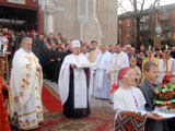 Після Літургії Владика склав щирі вітання для всіх парафіян, гостей, а в особливий спосіб привітав пароха митр. прот. Михайла Бігуна з нагоди іменини та 60-го Ювілею від Дня його народження та за вагому духовну працю з людьми та духовенством Калуського протопресвітеріату, від імені Блаженнійшого Любомира (ГУЗАРА) – Глави УГКЦ, вручив подячно-ювілейну грамоту. Повідомив бр. Юрій Прилепський.