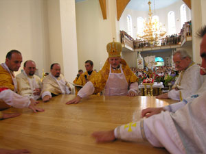 У проповіді на Літургії Владика Володимир наголосив на винятковому значенні побудови нової святині для всієї Церкви, Єпархії, парафії і кожної людської душі зокрема. Адже зведення храму – це вершинне досягнення людської діяльності, найпочесніше і особливо миле Богові. Тому войнилівська громада може пишатися, що саме її молитвами і трудами у центрі селища постав величавий Божий Дім. А зусиль було докладено справді дуже багато. Передусім, завдяки старанням духовенства, особливо теперішнього пароха о. Мирона Ящука, який домігся бездоганної якості будівельних та опоряджувальних робіт. Постання святині було б також не вирішеним, якби не багатолітня допомога парафії Пресв. Родини з німецького міста Фрайбург на чолі з о. Францом Лейтенмаєром, яка вже понад 10 років підтримує партнерські стосунки з Войниловом, щорічно відвідуючи селище та складаючи пожертви на святиню. Тому не дивно, що на освячення храму св. Миколая приїхало майже 40 осіб з Фрайбурга, засвідчуючи зворушливе єднання віруючих сердець, незважаючи на 2000-кілометрову відстань і мовні перепони.